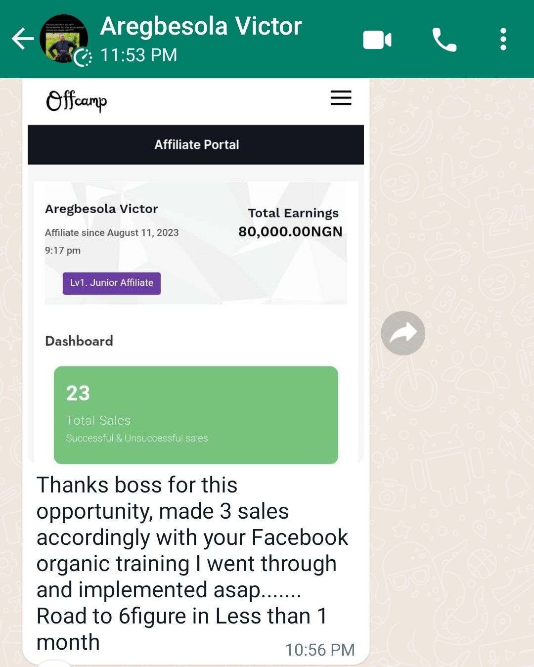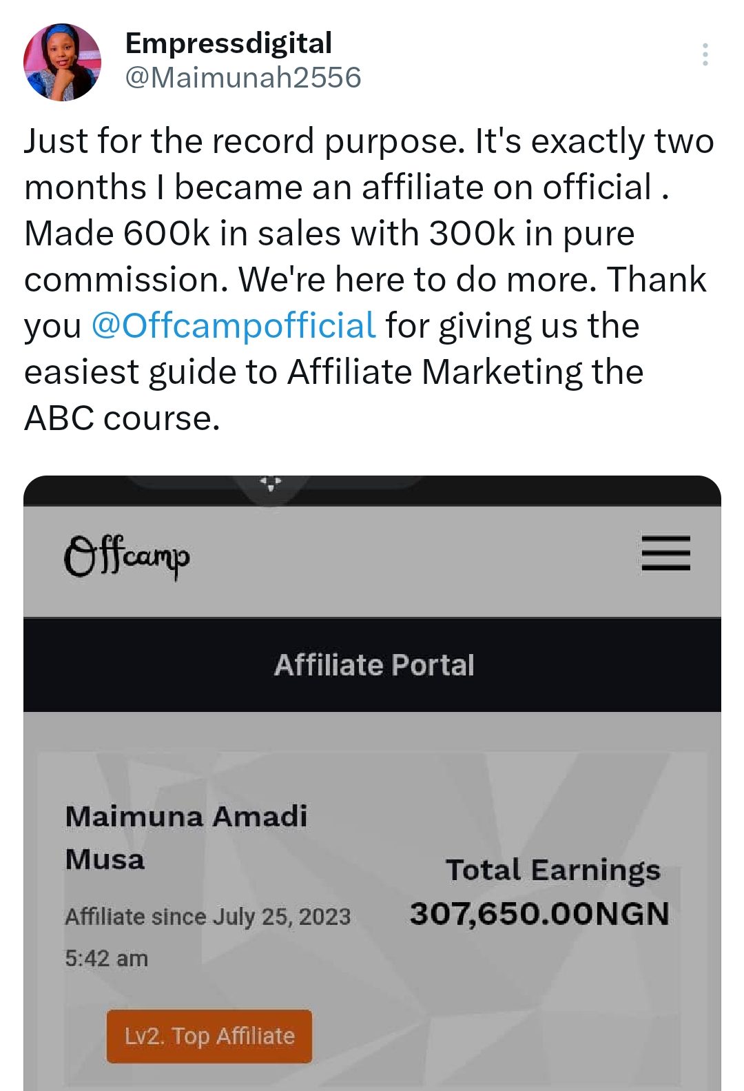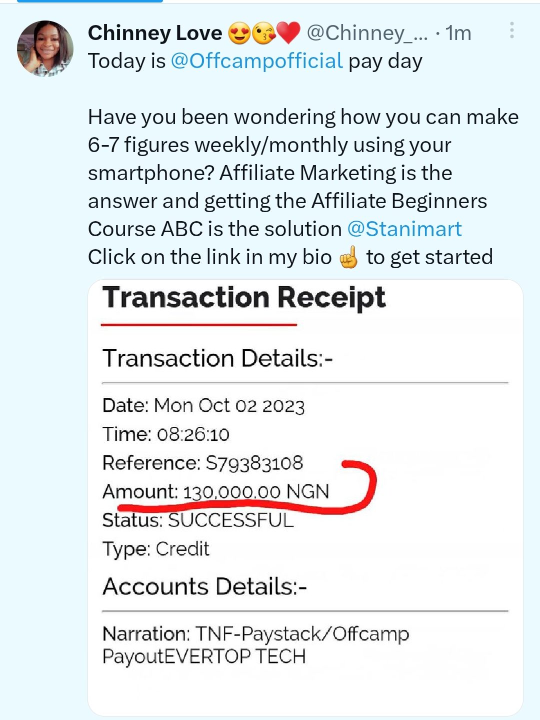 As of the time of writing (October, 2023), Offcamp is only available to Nigerians. I mean, they only pay out to Nigeria bank accounts. Offcamp pays her affiliates every Monday.