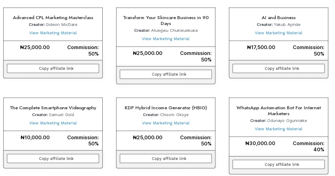 Also known as Selar Affiliate Network, Selar provides course creators the platform to sell their products. They go further to give affiliates the opportunities to make money selling these courses created by others.